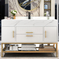 कस्टम लक्जरी 48/60 में फर्श पर खड़ी स्टेनलेस स्टील फ्रेम की अगुवाई दर्पण वैनिटी कॉम्बो बाथरूम कैंबर्स